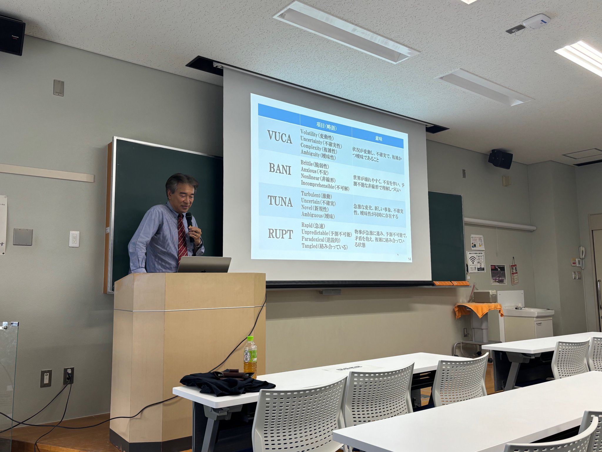 2025.11.04 新着情報 情報・システム研究機構(ROIS)斉藤卓也副機構長による特別講義を開催しました。 大学共同利用機関法人 情報・システム研究機構(ROIS)の斉藤卓也副機構長が、医光/医工融合プログラムの特別講義にお越しくださいました。 2017年には徳島大学の副学長を務められており、当プログラムとも関わりが深い斉藤先生。 科学技術と未来社会について、文科省や理化学研究所、徳島大学でのご経験を元にご講演いただきました。 <一覧に戻る> カテゴリ 全て 新着情報 月間アーカイブ2025/11(3)2025/10(4)2025/07(1)2025/05(1)2025/02(2)2024/12(2)2024/11(4)2024/10(2)2024/08(1)2024/05(1)2024/04(2)2024/01(1)2023/09(1)2023/04(1)
