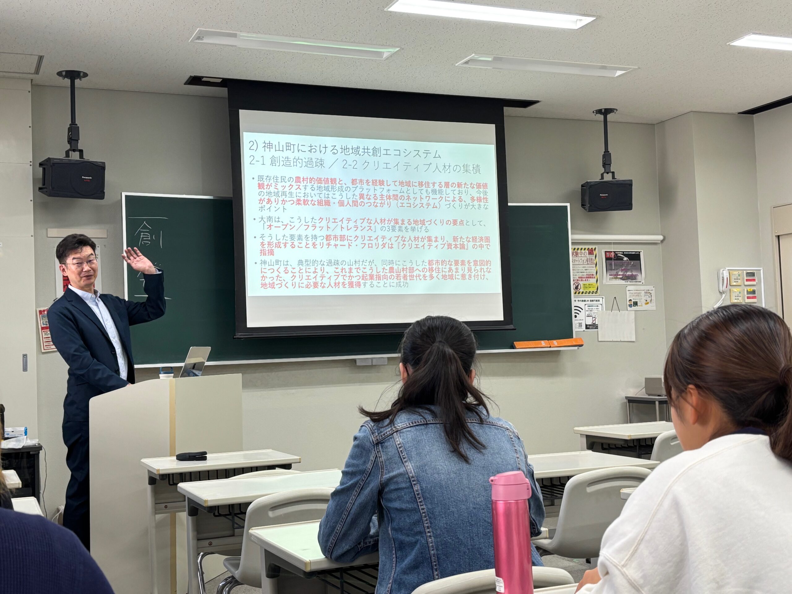 2025.11.10 新着情報 神山まるごと高等専門学校 佐野淳也先生による特別講演を開催しました。 神山まるごと高等専門学校 デザイン・エンジニアリング学科の佐野淳也先生が、医光/医工融合プログラムの特別講義にお越しくださいました。 「神山町から考える教育とまちづくりの生態系」をテーマに、地方創生についてお話しいただきました。 <一覧に戻る> カテゴリ 全て 新着情報 月間アーカイブ2025/11(7)2025/10(4)2025/07(1)2025/05(1)2025/02(2)2024/12(2)2024/11(4)2024/10(2)2024/08(1)2024/05(1)2024/04(2)2024/01(1)2023/09(1)2023/04(1)